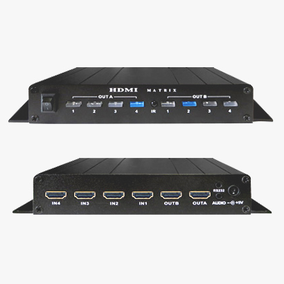 HDMI 4進2出高清矩陣,音頻同步嵌入 紅外控制,面板按鈕控制, 可擴展RS232控制