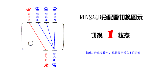 2 路VGA信號輸入,4 路分配輸出,其中?OUT1?為單獨臺式電腦輸出,避免了普通分配器切換到手提電腦輸入時臺式電腦顯示器只能顯示手提電腦內容的弊端,OUT2、OUT3、OUT4?為臺式電腦與手提電腦的切換分配輸出