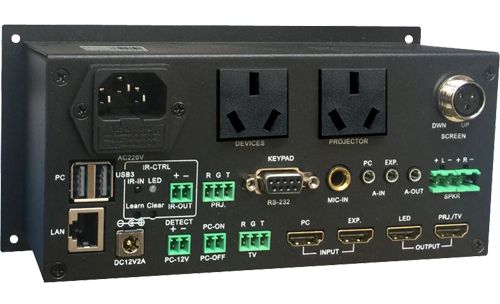 3路強(qiáng)電輸出,可供投影機(jī)、銀幕及電腦等設(shè)備。