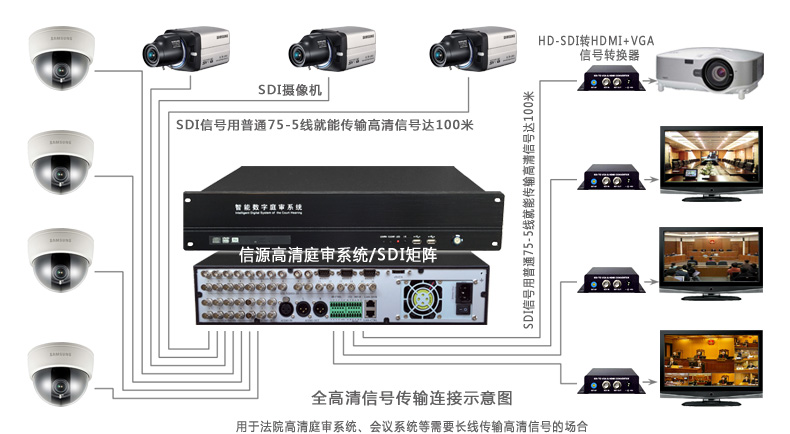 SDI長線傳輸全高清信號特點:全高清畫面,采用75-5或75-3視頻線,施工方便,成本更低
